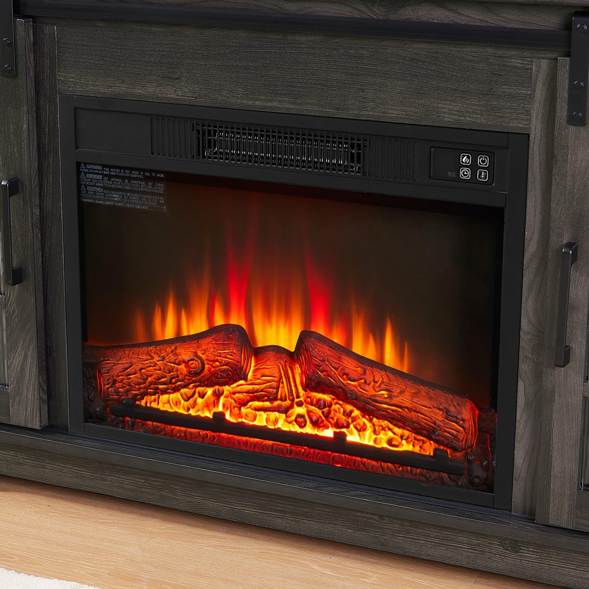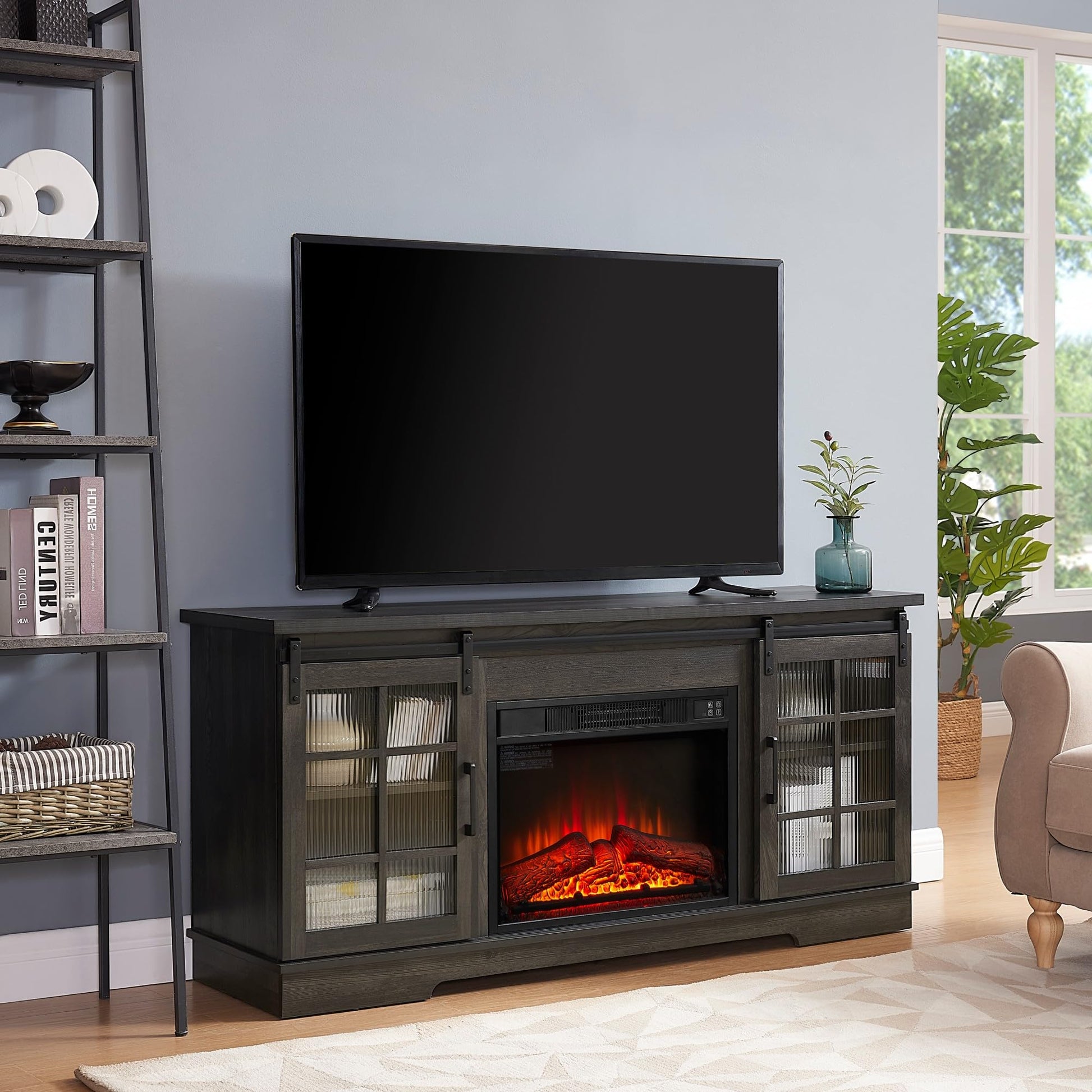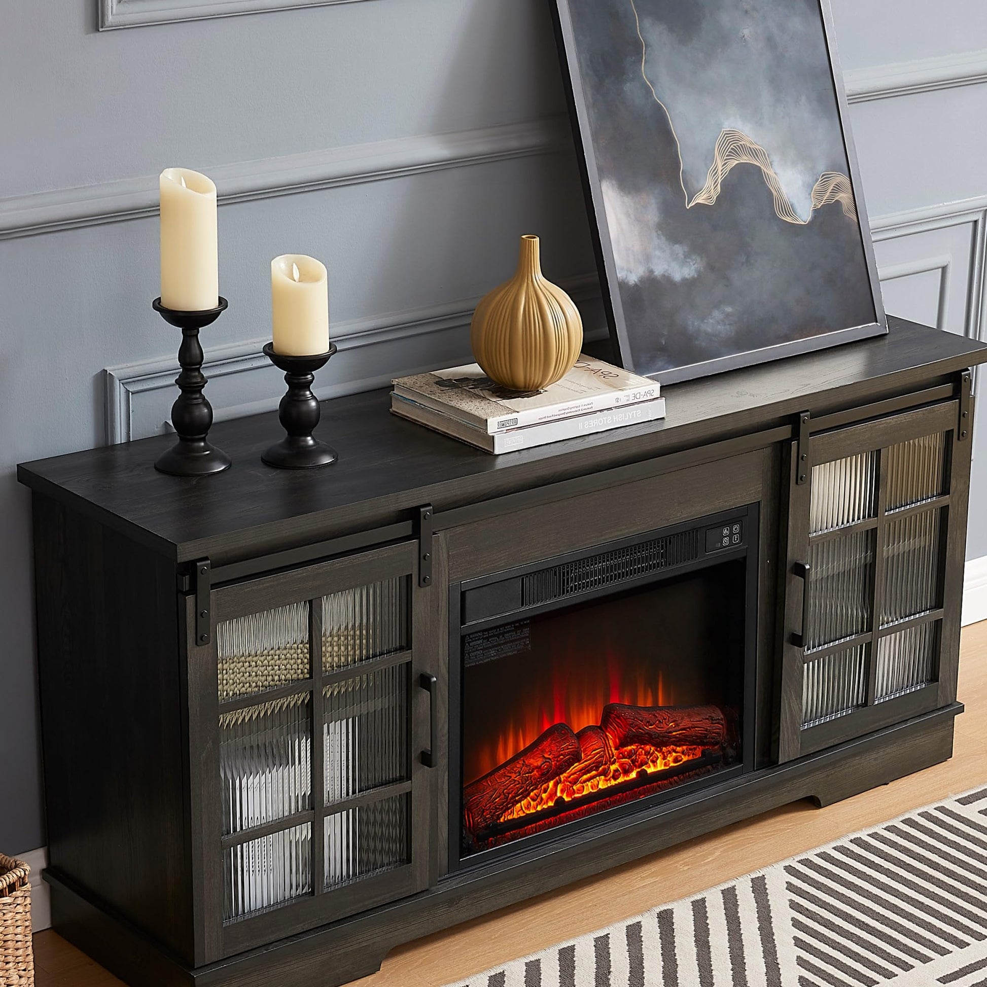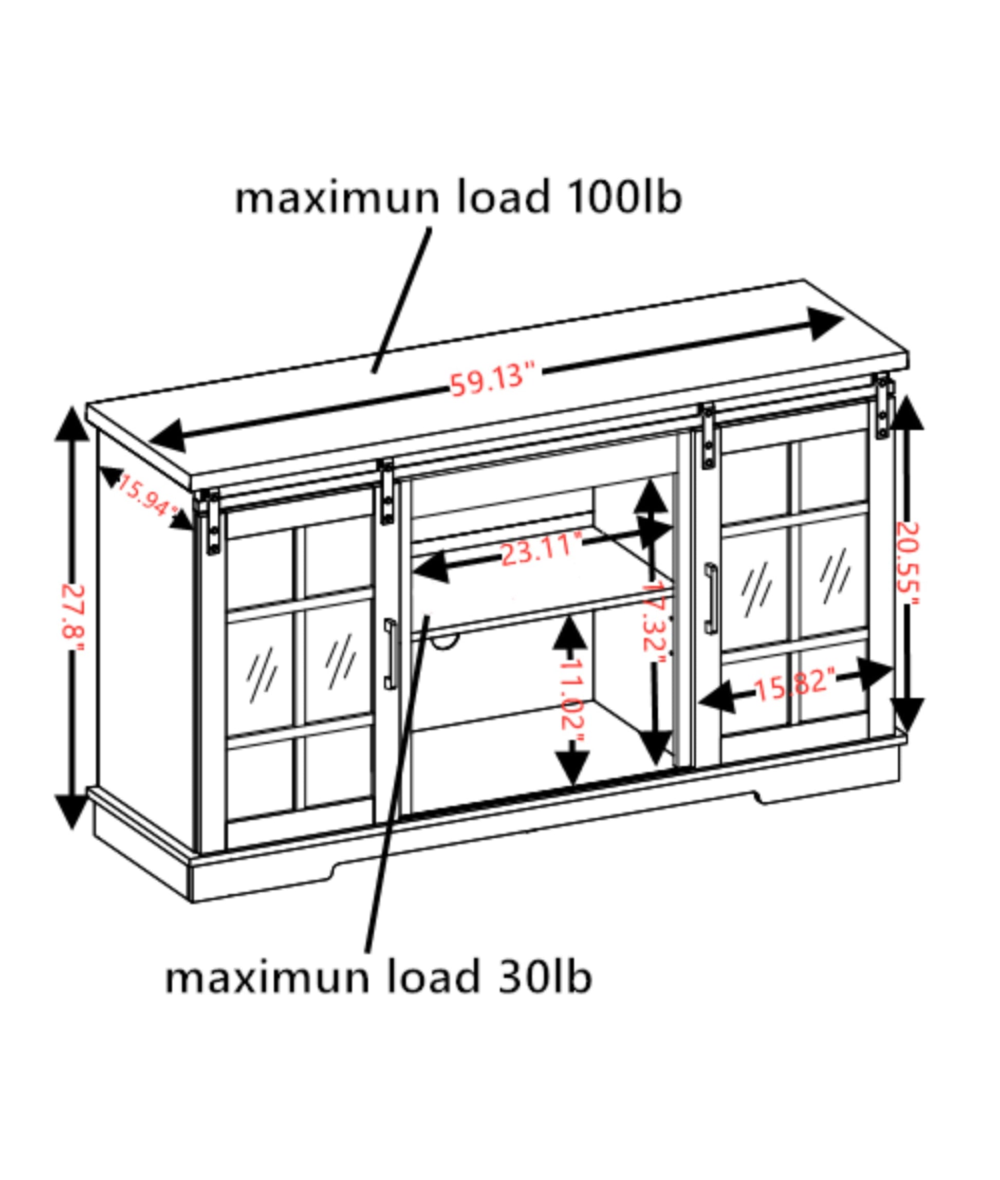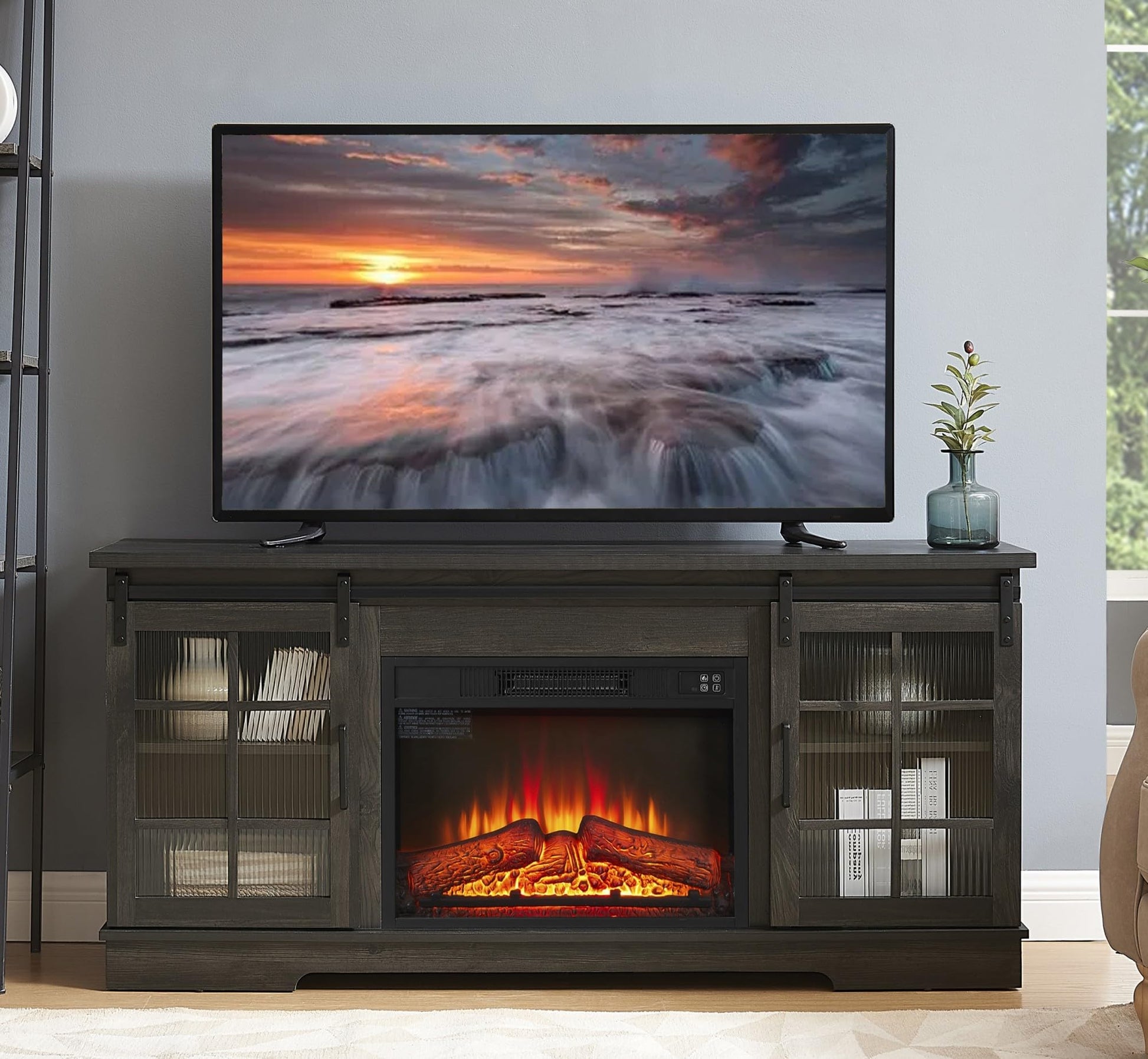Sliding Door TV Stand, 59" W Entertainment Center Console Table with 2 Sliding Fluted Glass Tempered Doors for TV Up to 65'', Large Storage Cabinet for Living Room