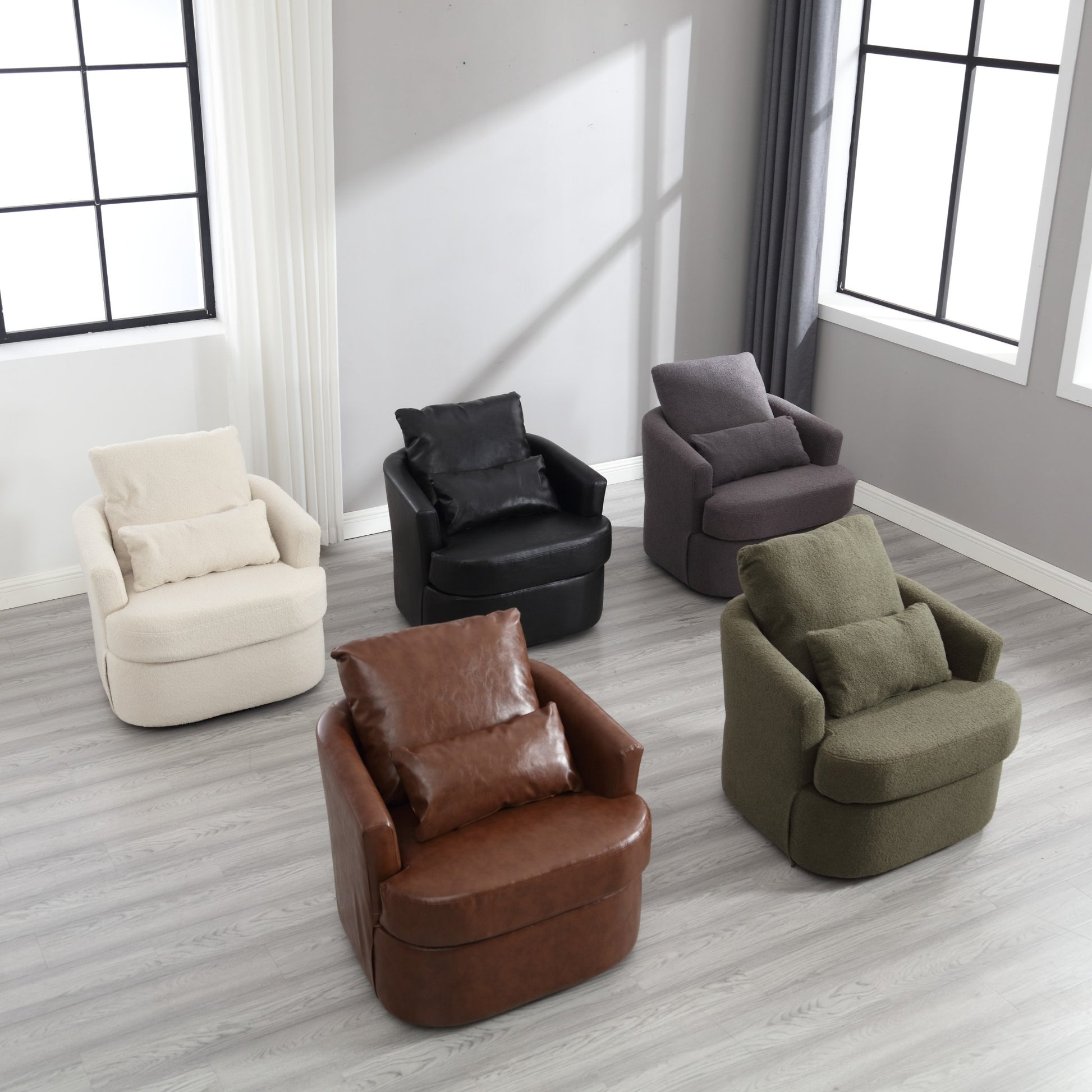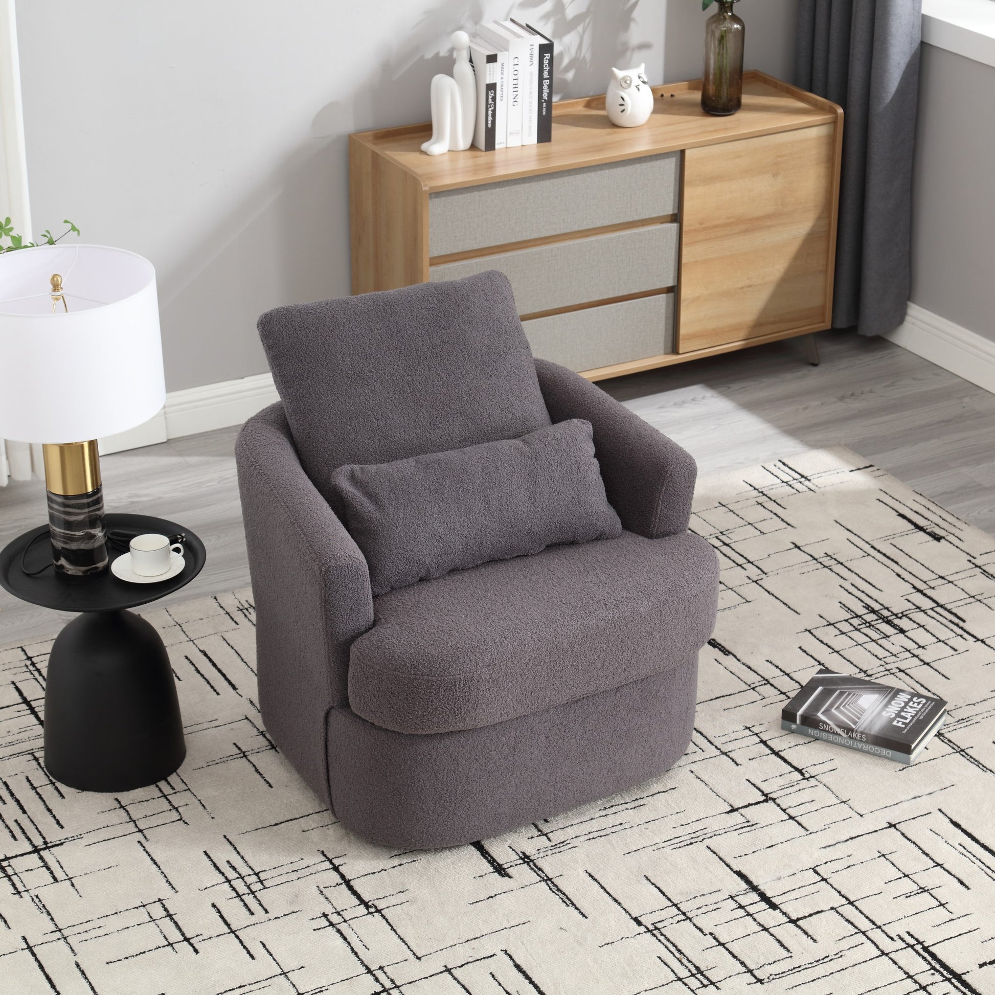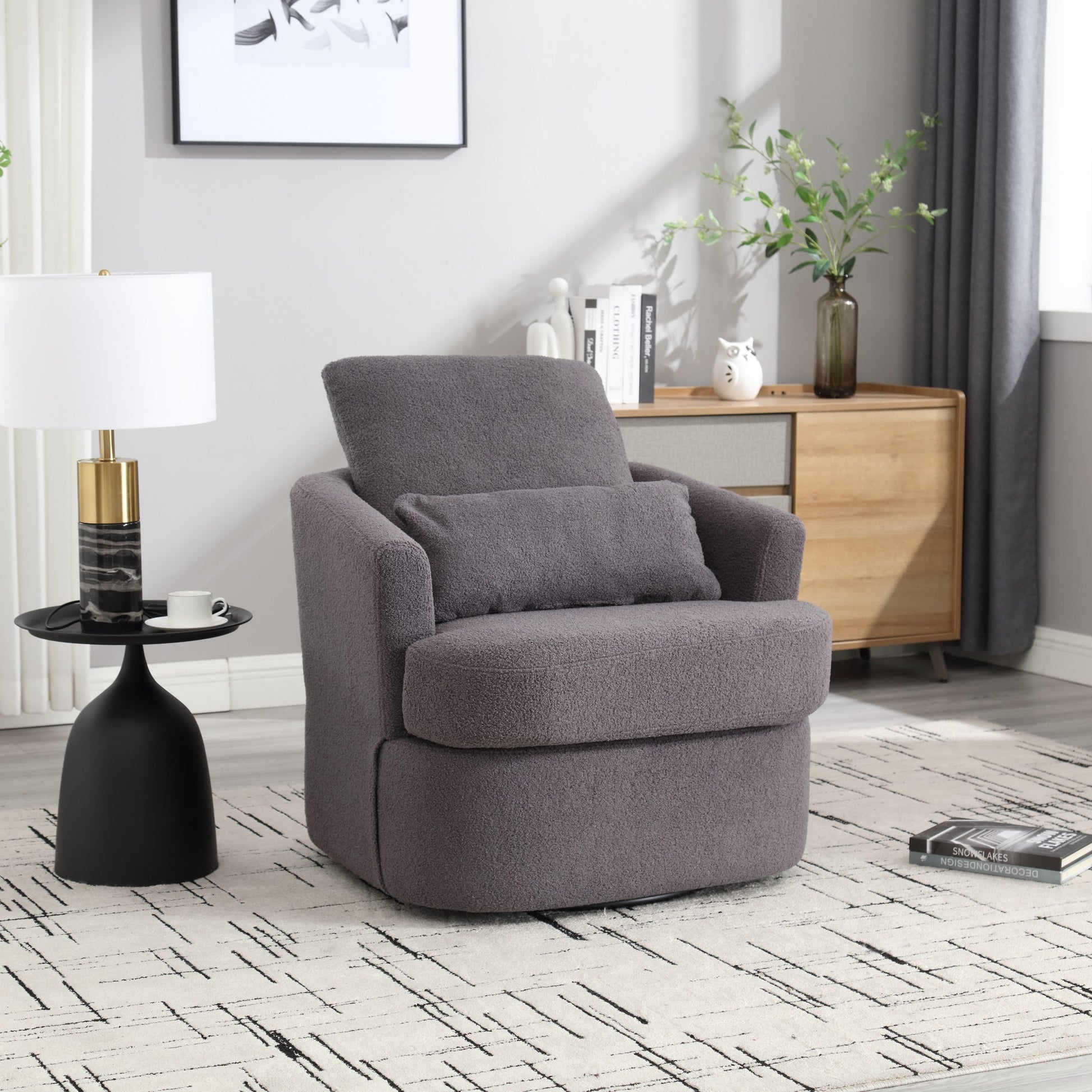 CKEASEAN 30"W Teddy Swivel Barrel Chair, Comfy 360 Degree Swivel Barrel Club Chair with 2 Pillows, Accent Sofa Chair for Living Room, Leisure Arm Chair for Bedroom