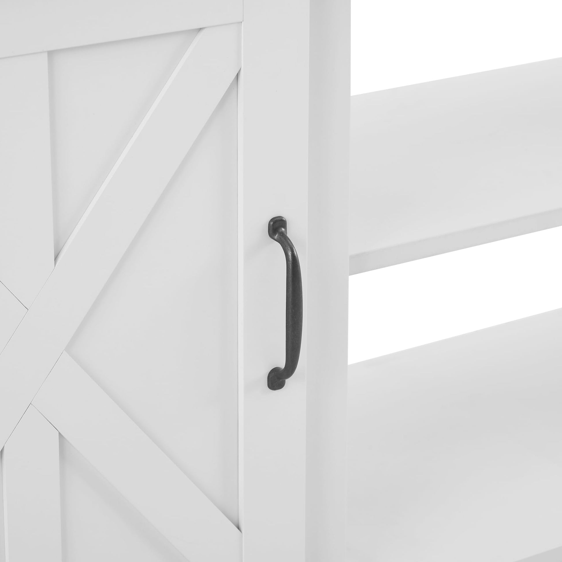 Farmhouse TV Stand with Open Shelves and Closed Storage, 65''W Modern Entertainment Center for TVs up to 70'', White Entertainment Console Table for Living Room