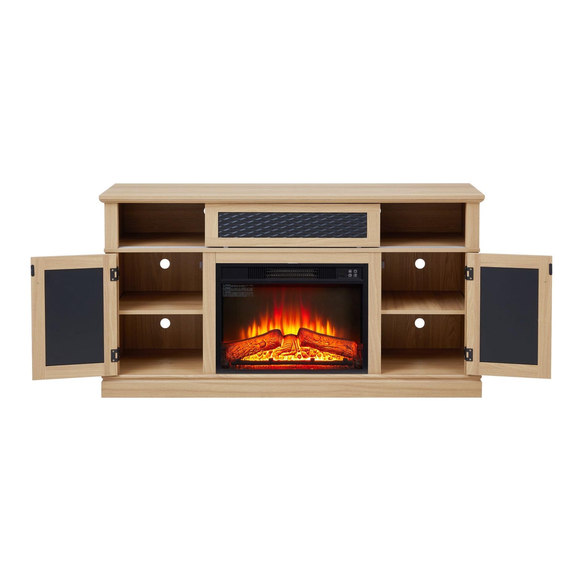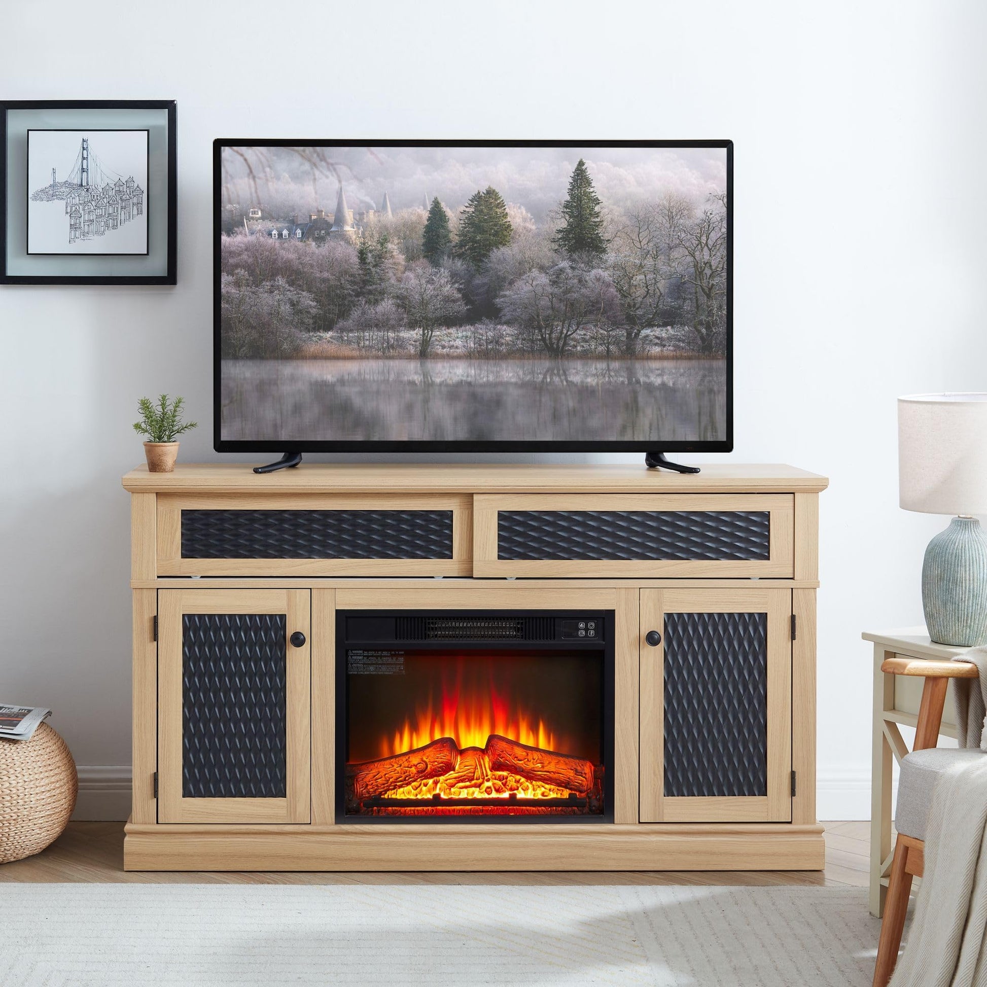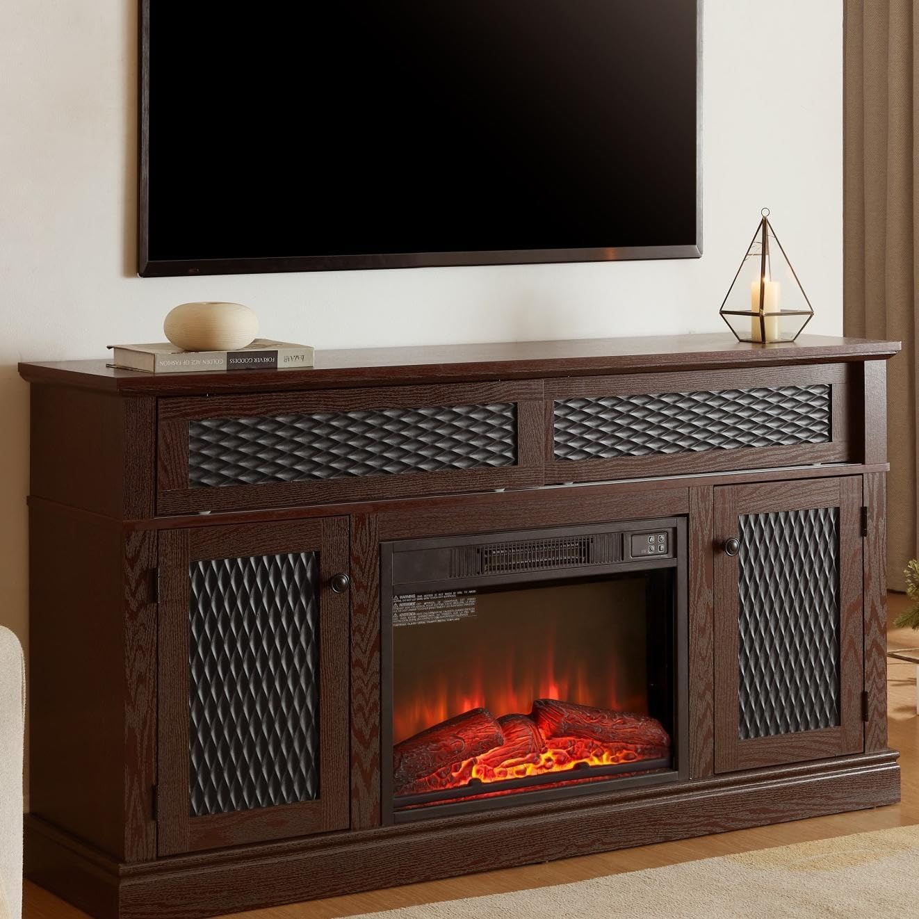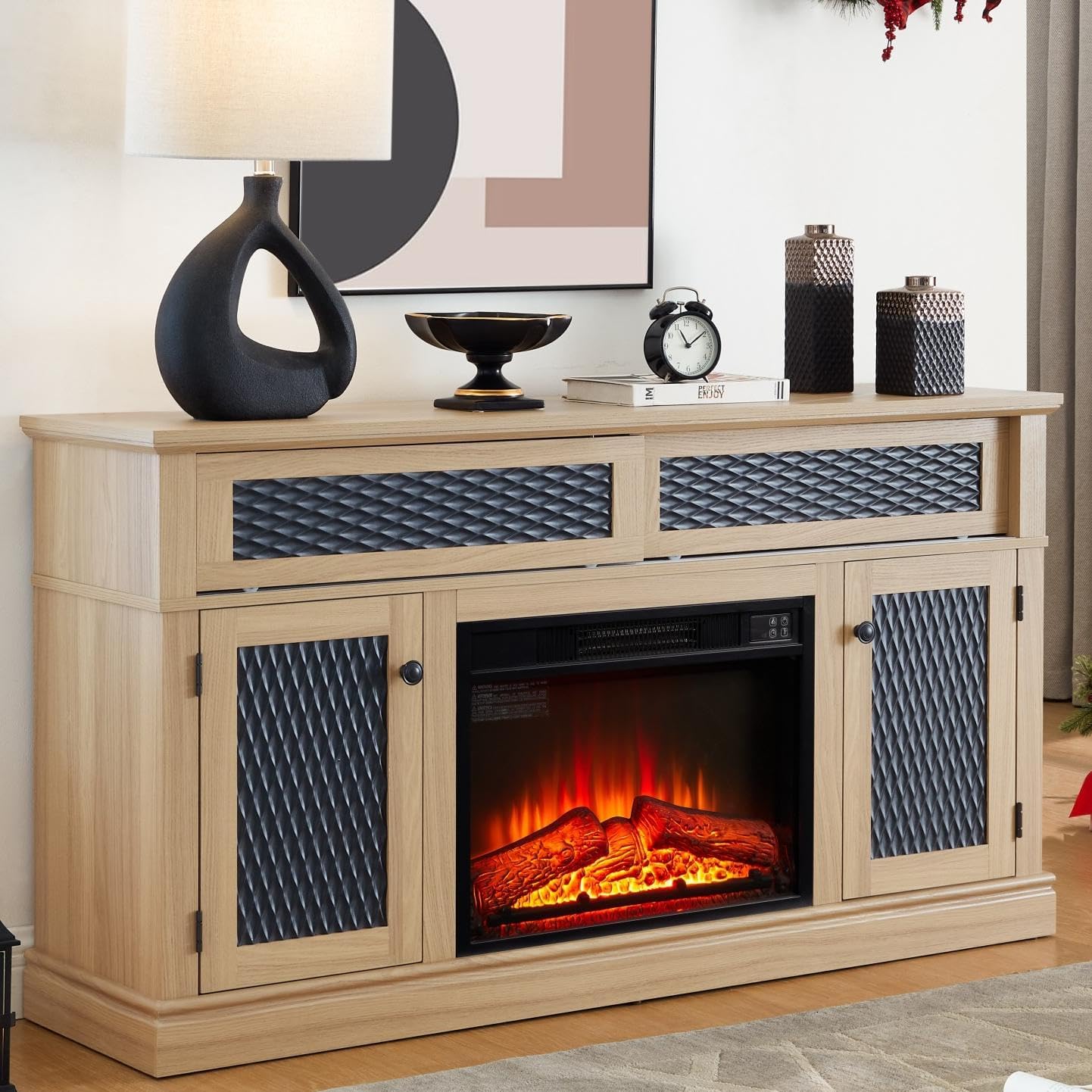 58.5" W TV Stand with Fireplace, Entertainment Center with Ample Storage for TVs up to 65 Inches, Wooden TV Console Table with Embossed Doors for Living Room