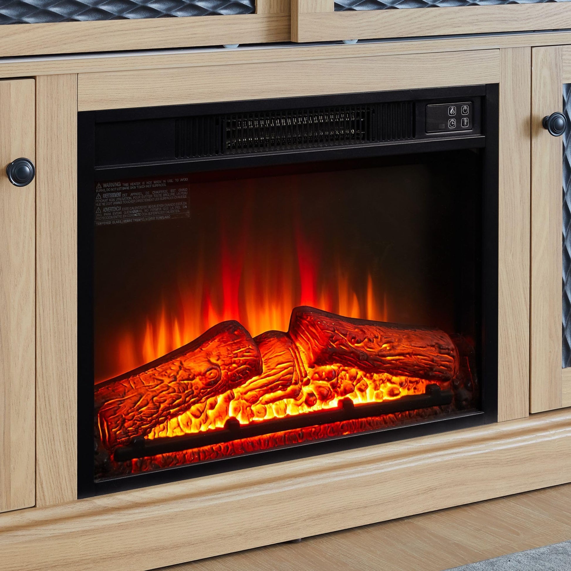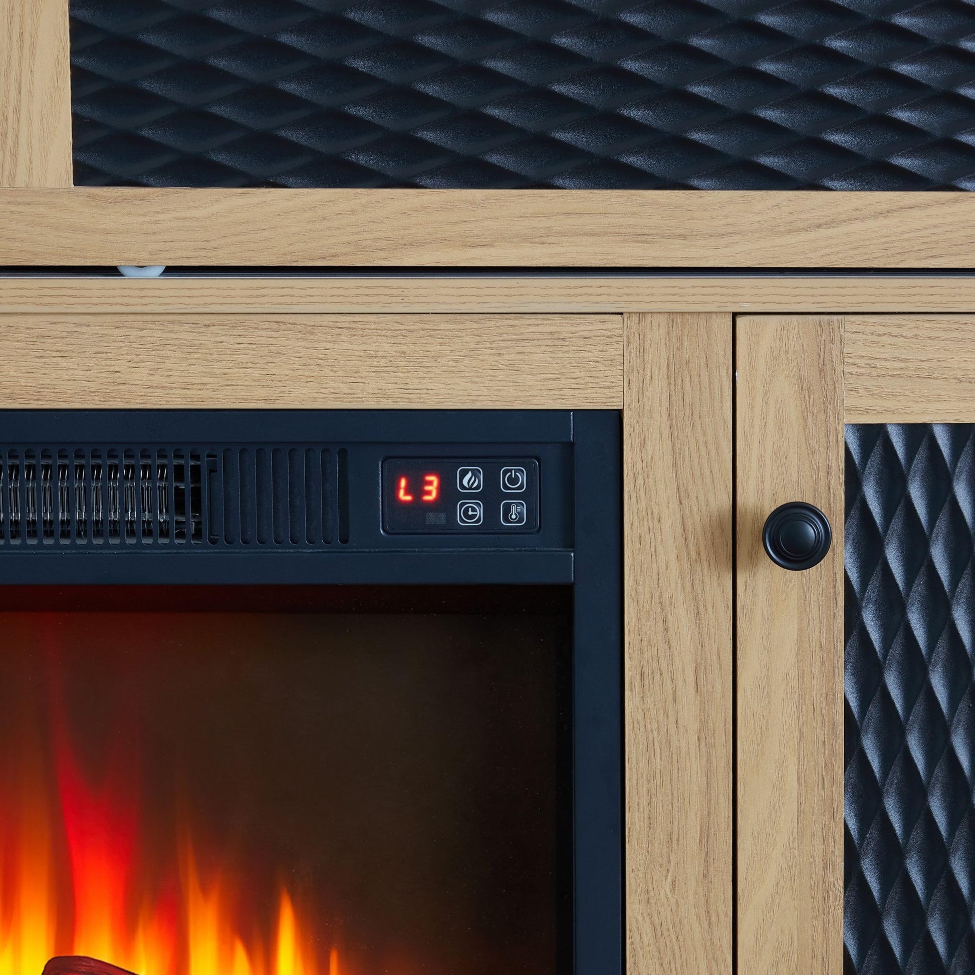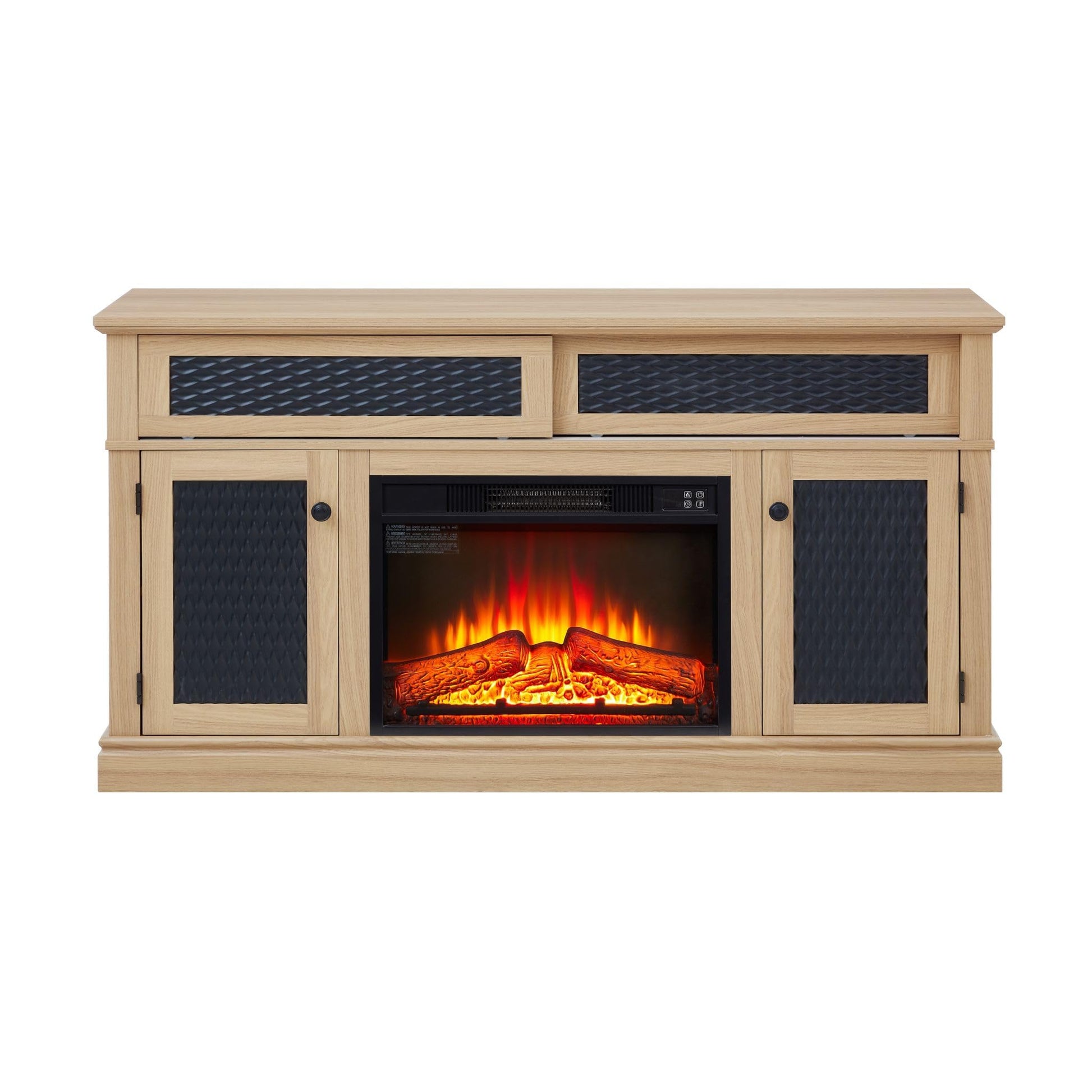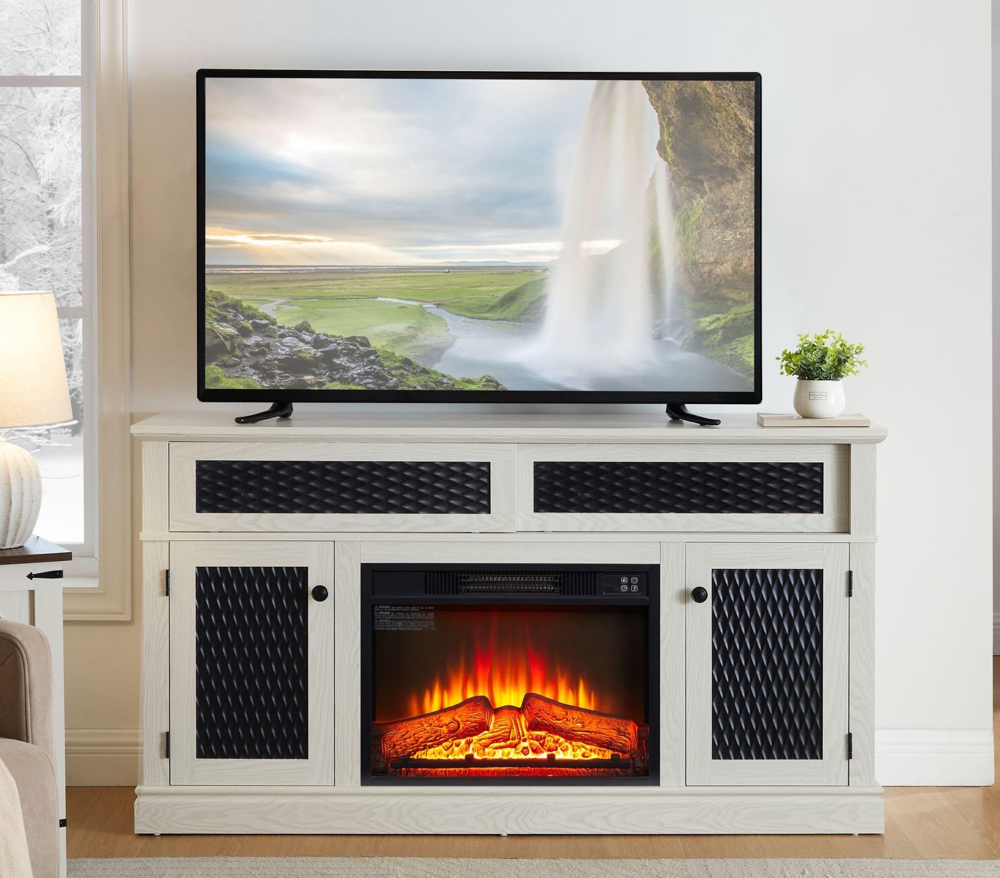 58.5" W TV Stand with Fireplace, Entertainment Center with Ample Storage for TVs up to 65 Inches, Wooden TV Console Table with Embossed Doors for Living Room