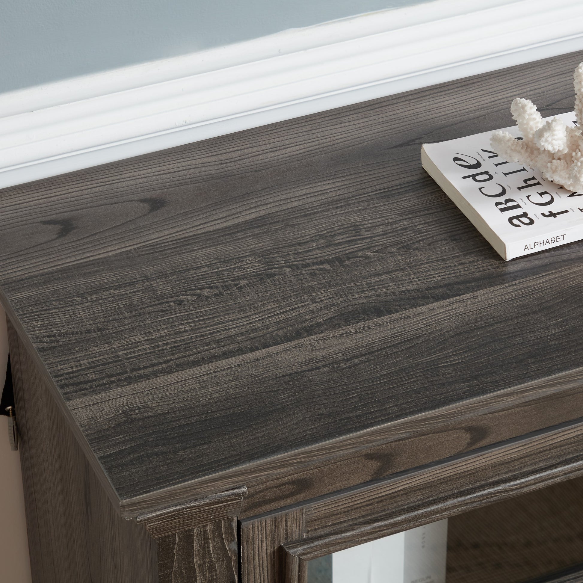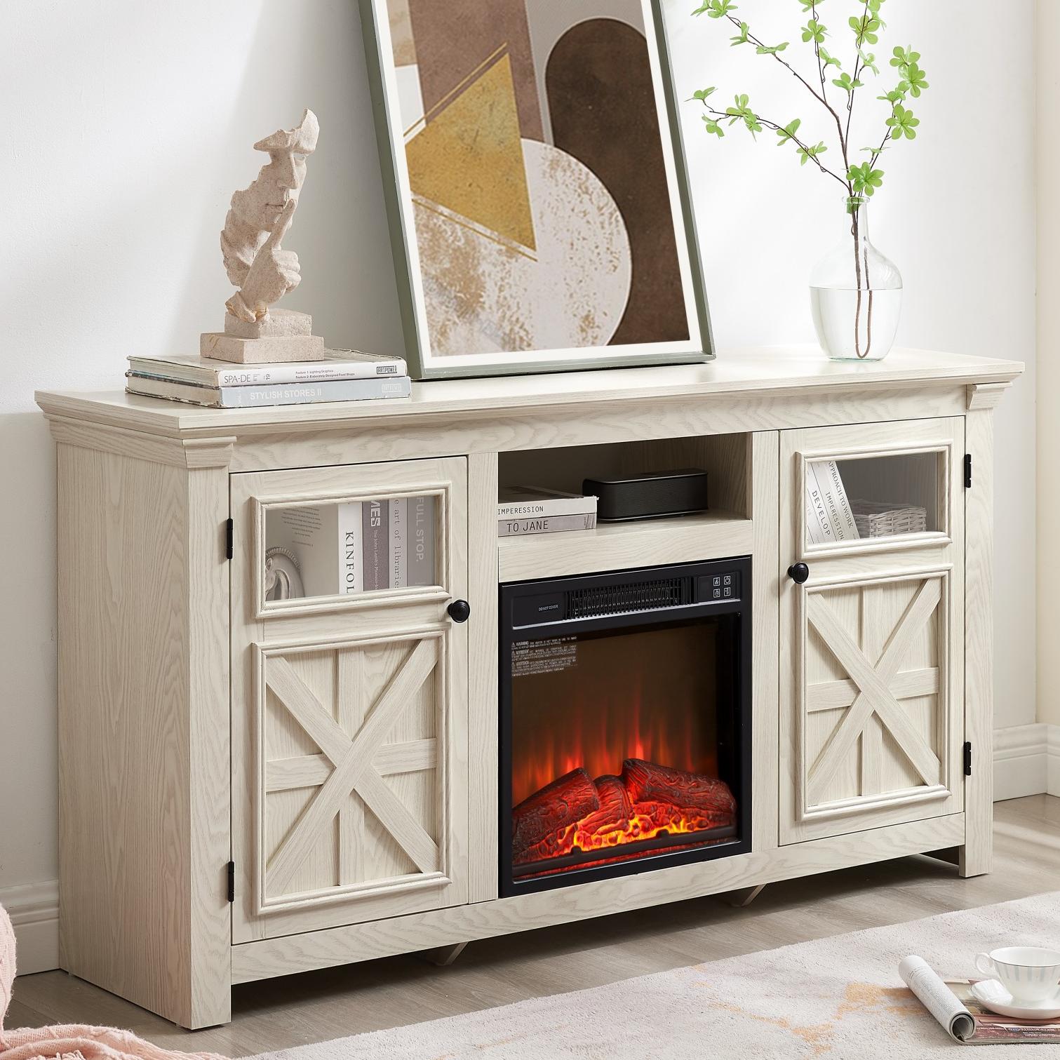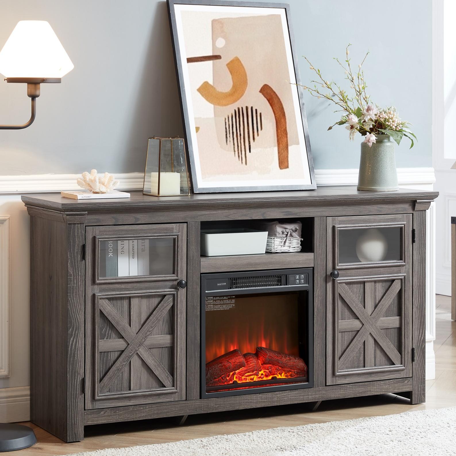 [Stunning Farmhouse] - Modern Fusion: This TV stand marries the eternal allure of traditional farmhouse charm with sleek modern trends. The classic double - cross barn doors, elegantly paired with contemporary transparent glass trim, create a harmonious blend of rustic warmth and modern sophistication, enhancing your home's decor effortlessly.